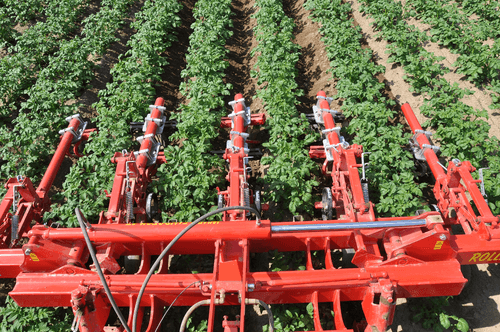 La bineuse arrière est dotée d'un système de guidage automatique par le 3ème point, un binage mécanique jusqu'à 6 % en dévers est possible. Au-delà, possibilité de compléter par un pré-guidage hydraulique en option.