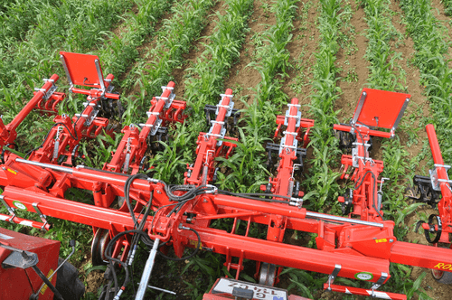 Binage de 2 à 12 rangs. Entre rang de 30 à 80 cm (légumes et betteraves de 30 à 50 cm. Maïs de 60 à 80 cm).
