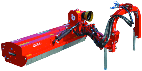 Pour tracteur de 60 à 90 cv, largeur de travail 2 m, 650 kg. Roue libre, rouleau AR, inclinaison 90° vers le haut, 65° vers le bas. Toute une gamme disponible de 1,20 à 2,50 m pour tracteurs de 25 à 120 cv.