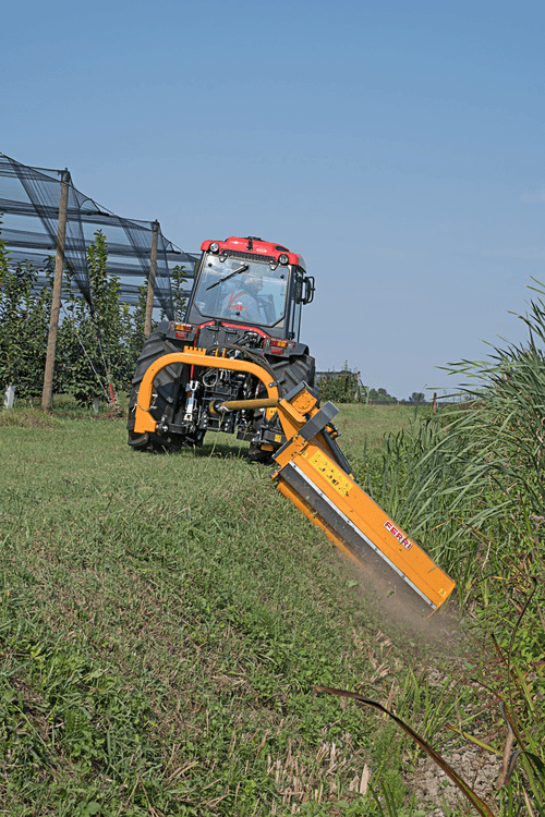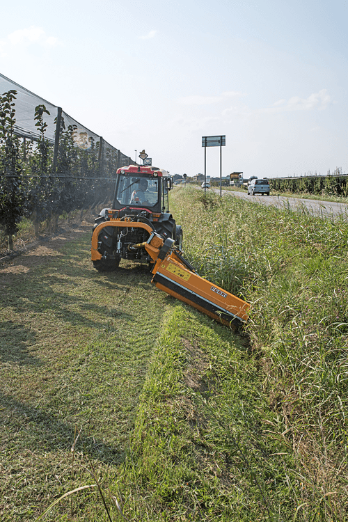 Pour tracteur de 60 à 90 cv, largeur de travail 2 m, 650 kg. Roue libre, rouleau AR, inclinaison 90°...