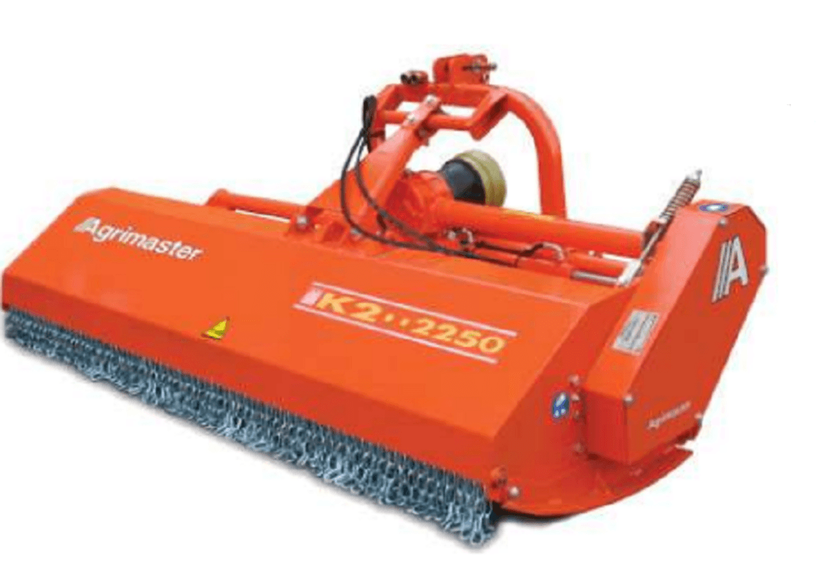 - Broyeur avant série K2 pour le broyage de l’herbe et serments. Puissance minimale du tracteur 25 à 45 cv, boitier avec roue libre, attelage 3 points avec gouvernail coulissant à déport manuel, couteaux au choix, contre-couteau fixe à dents, groupe patins rouleau réglable en hauteur, rouleau arrière Ø 140, tendeur de courroie automatique. Largeurs de travail de 1,6 à 2,2 m. Poids de 355 à 457 kg. Accessoires sur demande pour chacun.