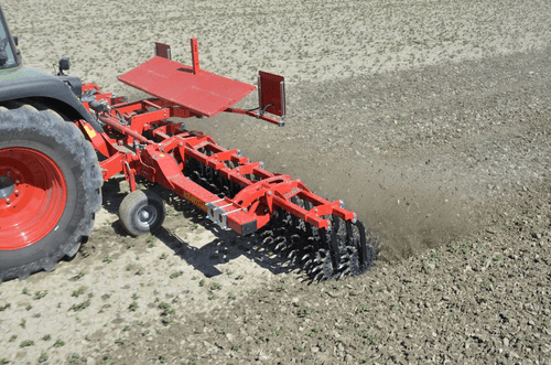2 rangées de houes rotatives à doigts, la croûte est cassée et émiettée grâce aux pointes des étoiles en forme de cuillère.