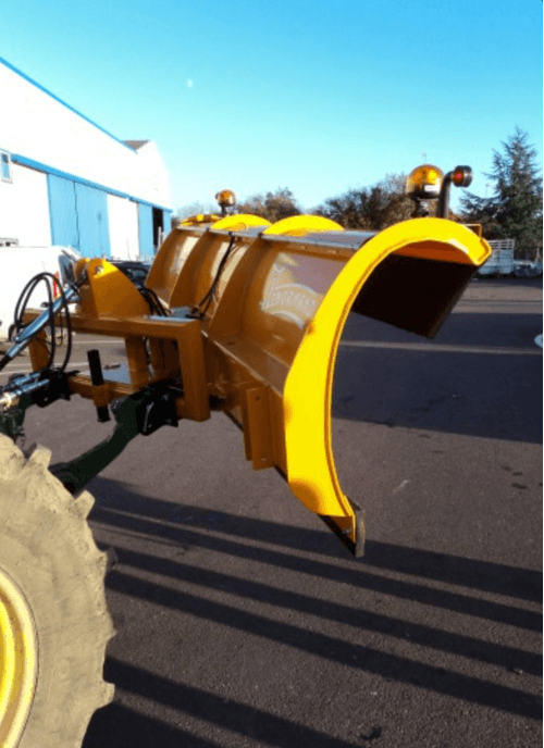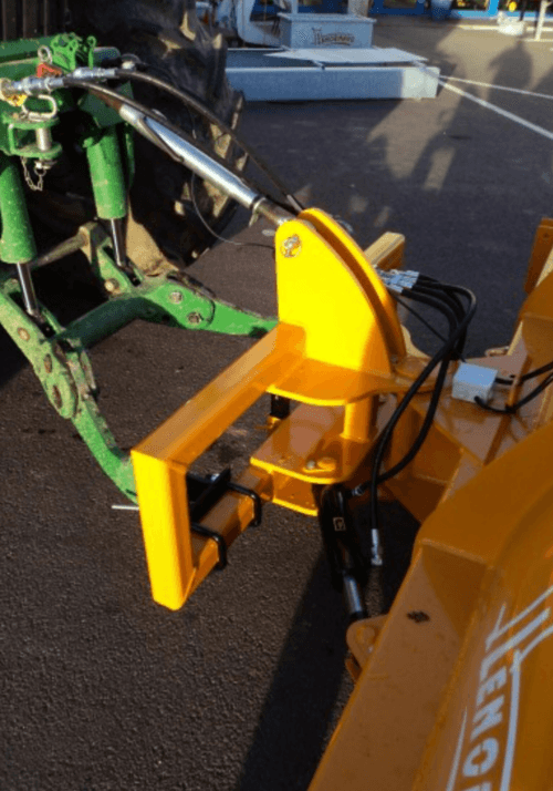 Inclinaison hydraulique droite et gauche par deux vérins double effet et limiteur de pression permettant le débrayage des vérins en cas de choc.