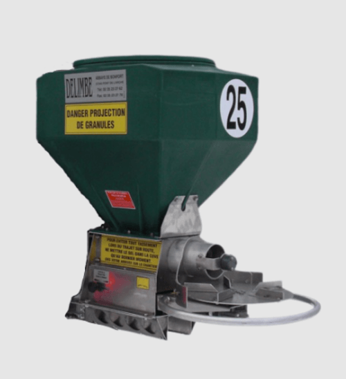 Pour ces 2 saleuses, la capacité de cuve en polyéthylène est de 80 ou 120 litres et conviennent pour sel sec ou humide. Choix d’équipements en option.