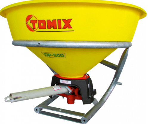 3 - Distributeur d'engrais à disque DC 6 - 18 M porté à épandage par disque à ailettes, cuve polyéthylène roto-moulée, fond de cuve et distribution ouverture, fermeture INOX, disque d'épandage acier, réglage de débit et d’ouverture par levier . châssis en tube d'acier protection par peinture thermo durcie en polyester ou galvanisé à chaud, largeur d ’épandage de 6 à 24 mètres, livré avec agitateur, grille de protection et cardan.
