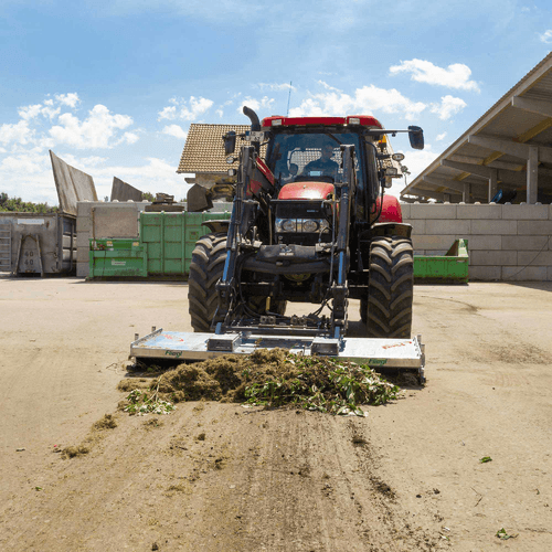 8 rangées de balais fixes + 2 frontaux et 1 central. Ski d'aide au réglage de chaque côté. Châssis galvanisé. Attelage EURO et fourche palette.