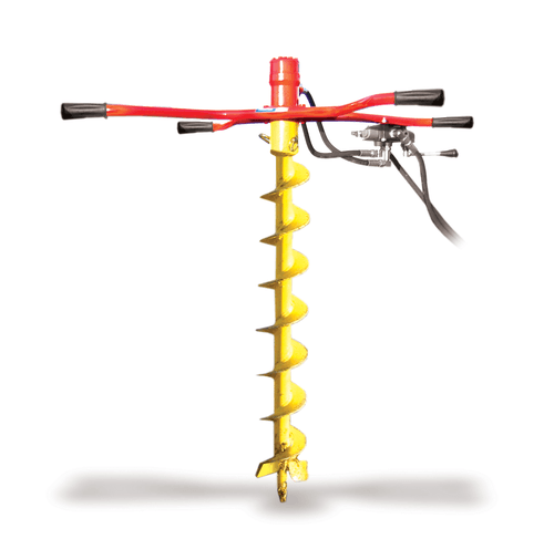 La tarière TRH MANUELLE est d'une utilisation simple à 2 personnes avec moteur hydraulique de tout type d'engin (débit minimum 20 L/min). Grand choix de vrilles, longueur 1,10 m et diamètre 100 à 250 mm et nombreux accessoires pour ancrage type : ANCREST, FENOX, 2 ERGOTS LEBEC - AMARAGRI.