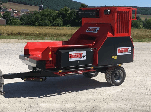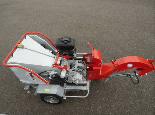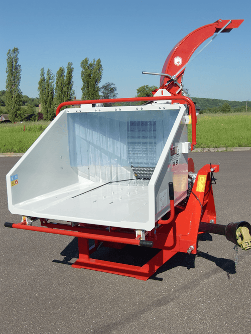 Moteur thermique essence ou diesel, prise de force, remorque routière. Accès très facile au rotor, au rouleau ameneur et à la contre lame par simple basculement de l’éjection. Choix d’options possible selon les besoins.