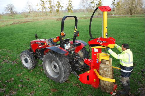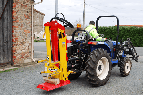 Dégagement 1,10 m pour la fendeuse XYLO destinée aux microtracteurs et petits tracteurs. Double vitesse automatique de descente du coin.