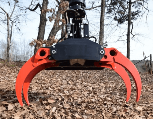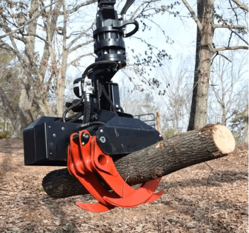 Pour les applications plus complexes, nous proposons le grappin coupeur abatteur pendulaire avec TILT, offrant un diamètre de coupe maximal de 500 mm et une force de 1275 daN, spécialement conçu pour les pelles ou grues, permettant une flexibilité et une polyvalence accrues sur le terrain.
