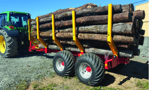 Remorque forestière monopoutre ou bipoutre pour un PTAC de 11 et 15 tonnes selon modèle.