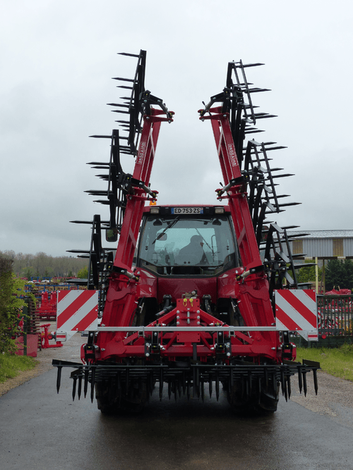 * Cinq modèles de herses HVSL, largeur de travail de 5 m à 9,40 m, de 84 à 162 dents, poids de 1 660 à 2 750 kg.