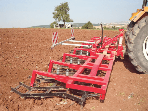 2 - Herse HVSL est un modèle lourd équipé de dents mangano-siliceux de 28 mm, longueur 280 mm qui conviennent aux sols les plus durs. Châssis bipoutre 100 x 100 jusqu’à 6,3 m et tripoutre à partir de 7,3 m.