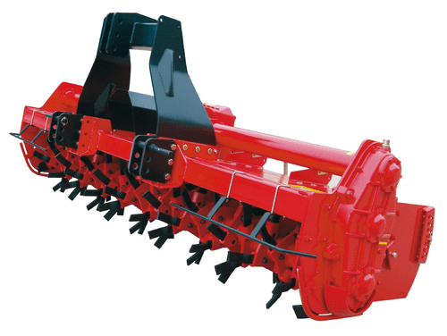 Fraise rotative avec rotor à lames équerres et prise de force à 540 tr/min ou 1000 tr/min.