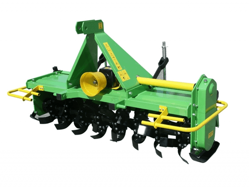 Fraise rotative avec rotor à lames équerres et prise de force à 540 tr/min ou 1000 tr/min.