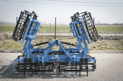 Largeur de transport inférieure à 3,0m. Profondeur de travail : à 13cm. Repliage hydraulique pour le transport à partir de 4,0m. Largeur de travail de 3 m à 5,5 m. Puissance requise de 80 à 160 cv. Blocage mécanique pour le transport. Efface traces. Choix d’équipements en options pour chaque utilisateur.
