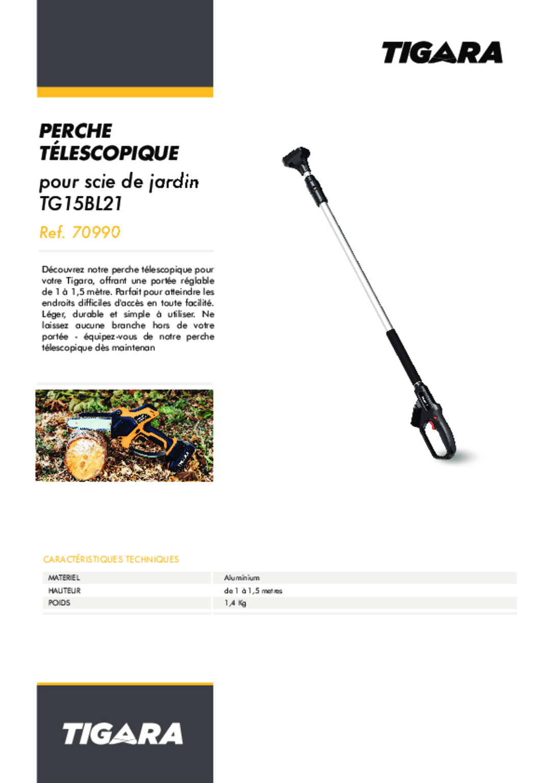 Perche télescopique scie de jardin TG15 BL21