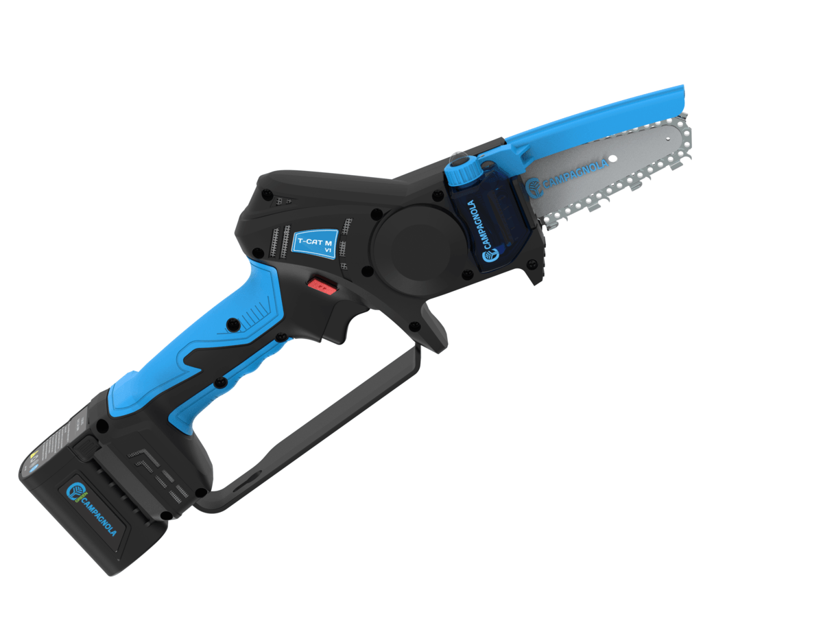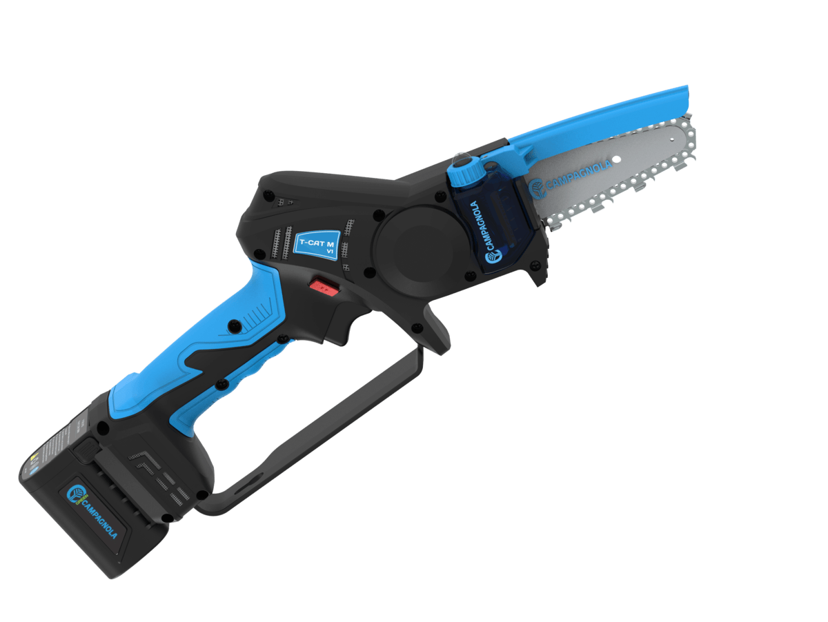 14,4 V. 2,5 Ah. Ø de coupe 8 cm. Vitesse de la chaîne 7,5 m/sec. Guide 4". Inclus : 2 batteries 2,5 Ah. Chargeur à triple sortie. Mallette de transport. Kit d’outils.
