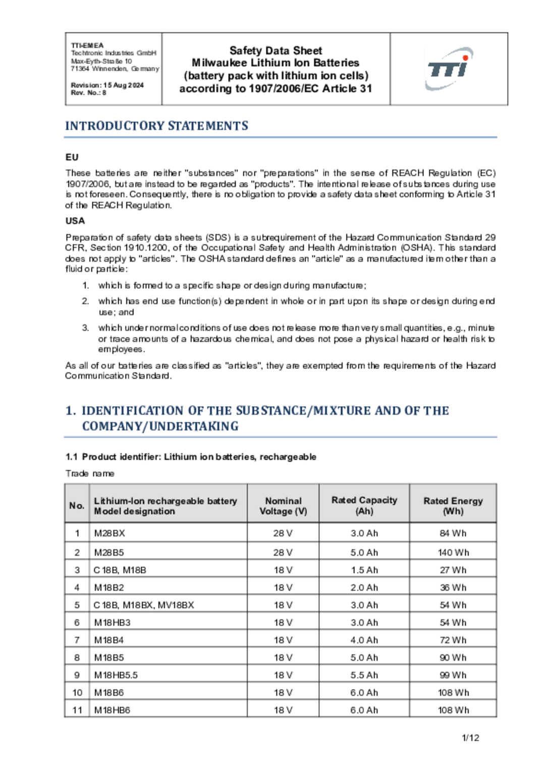 2 Batteries 18 V FORGE => 2 x 8 Ah.