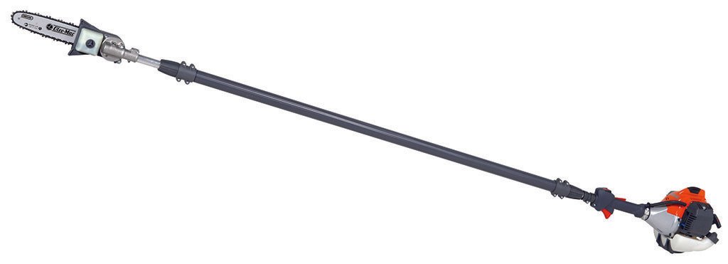 Moteur 2T. EURO 2. 27 cc. 1 kW/1.3 ch. Perche inclinable et réglable sur 5 positions de 0° à 90°. Tube télescopique. Longueur de la machine 2,60 à 3,80 m. Longueur de guide 25 cm. Chaîne 3/8'' X ,050''. Poids sans guide ni chaîne 7,9 kg.