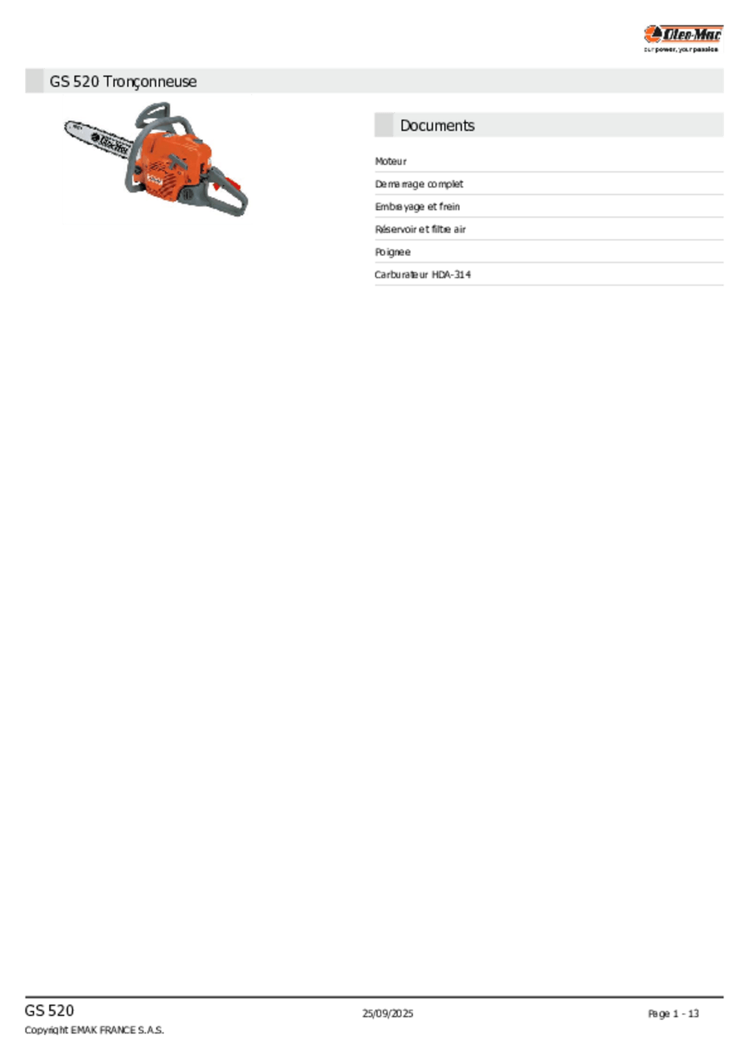 Vitesse de chaîne 18 m/s à 9000 tr/min.