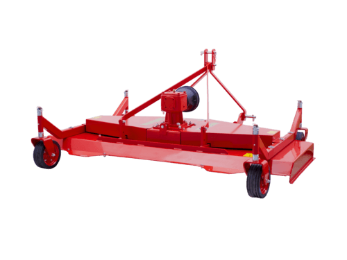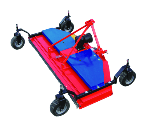 Attelage à 3 points catégorie 1. Boîtier en fonte 540 trs/min. Transmission par courroies. Éjection arrière. Prédisposée pour montage du kit mulching. Roues pivotantes réglables. 3 rotors à 1 lame. Poids 275 kg.