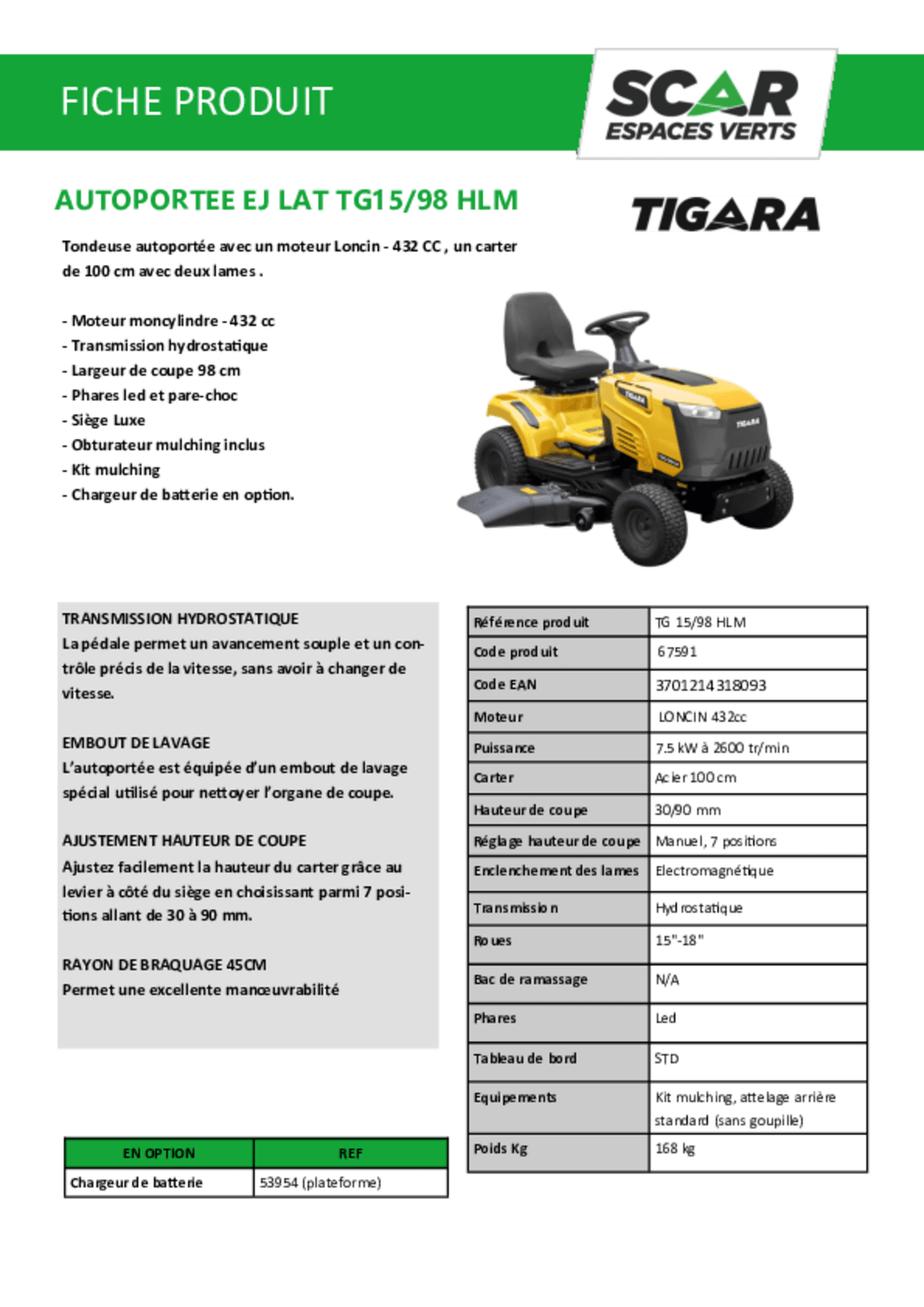| Largeur de coupe | 98 cm |