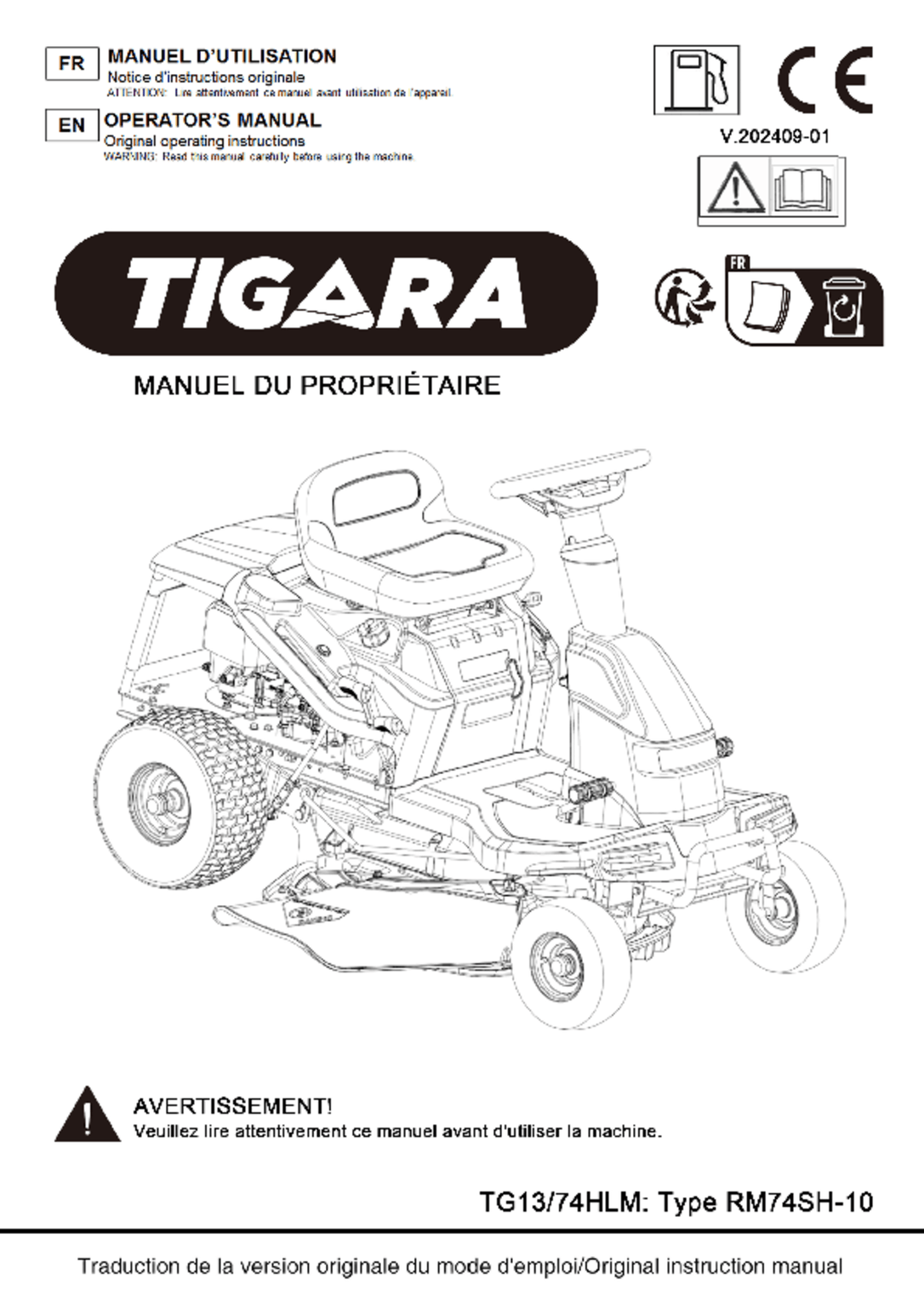 Tondeuse autoportée RIDER TG 13/74 HLM