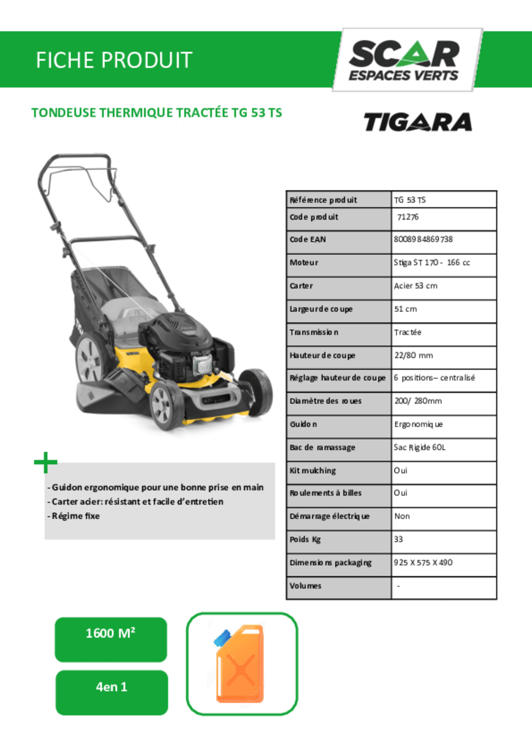 Tondeuse thermique tractée TG53TS