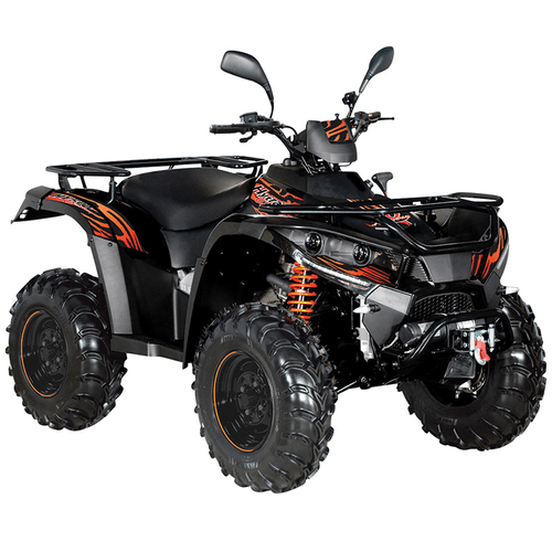 Transmission : variateur automatique, vitesse longue, vitesse courte, marche arrière. Mode 4x4 à la demande par commande électrique, différentiel avant avec blocage à glissement limité Finale.
