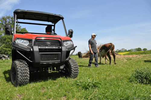 Transmission : variateur avec frein moteur. Vitesse d'avancement 40 Kms/h (50 non homologué). Gamme de vitesses L·H·N·R 4WD