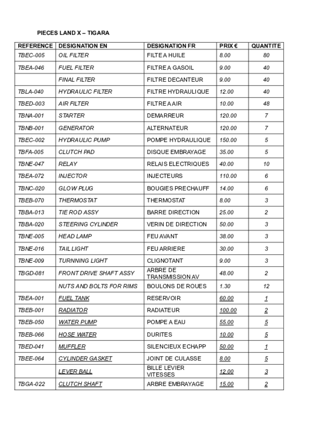 Pièces et accessoires