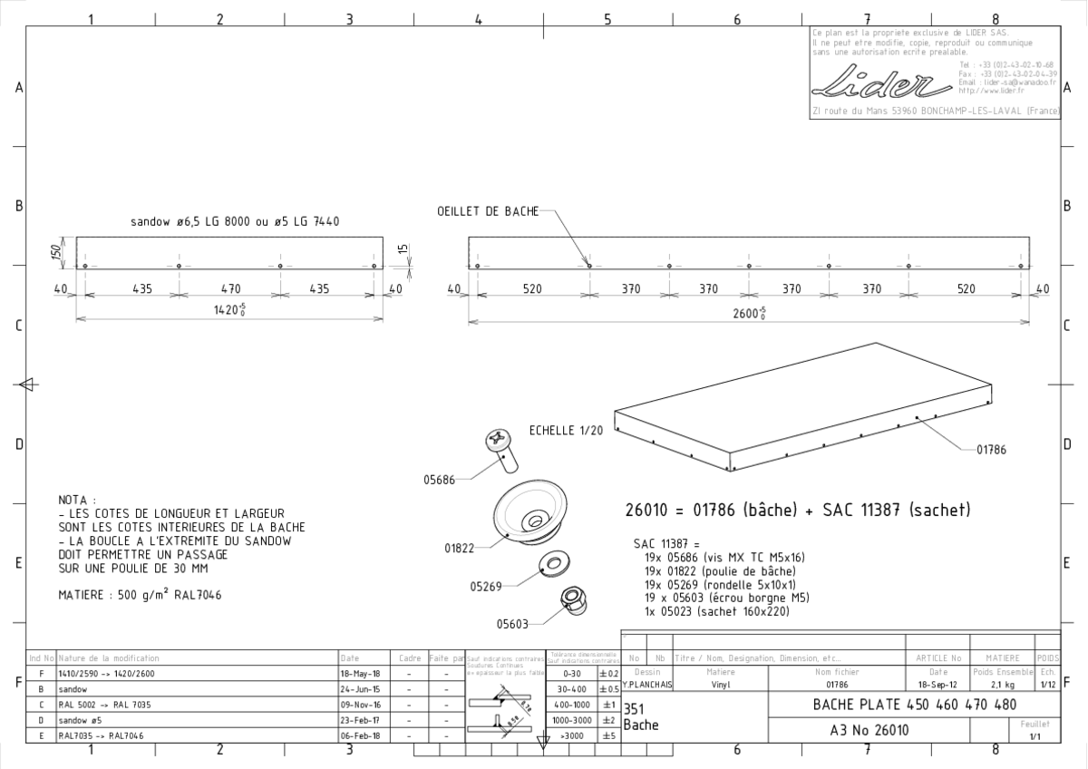 En aluminium. Droites. Longueur 250 cm. Largeur 31 cm.