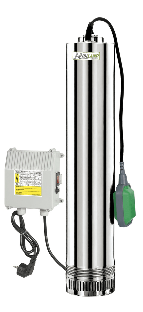 Pour eaux claires. Ø 125 mm. 230 V, 50 Hz. Puissance : 800 W. Débit : 130 L/min. Pression : 6,5 Bar. Refoulement Ø : 1’’1/4. Hauteur : 43 m. Etanche - IP68