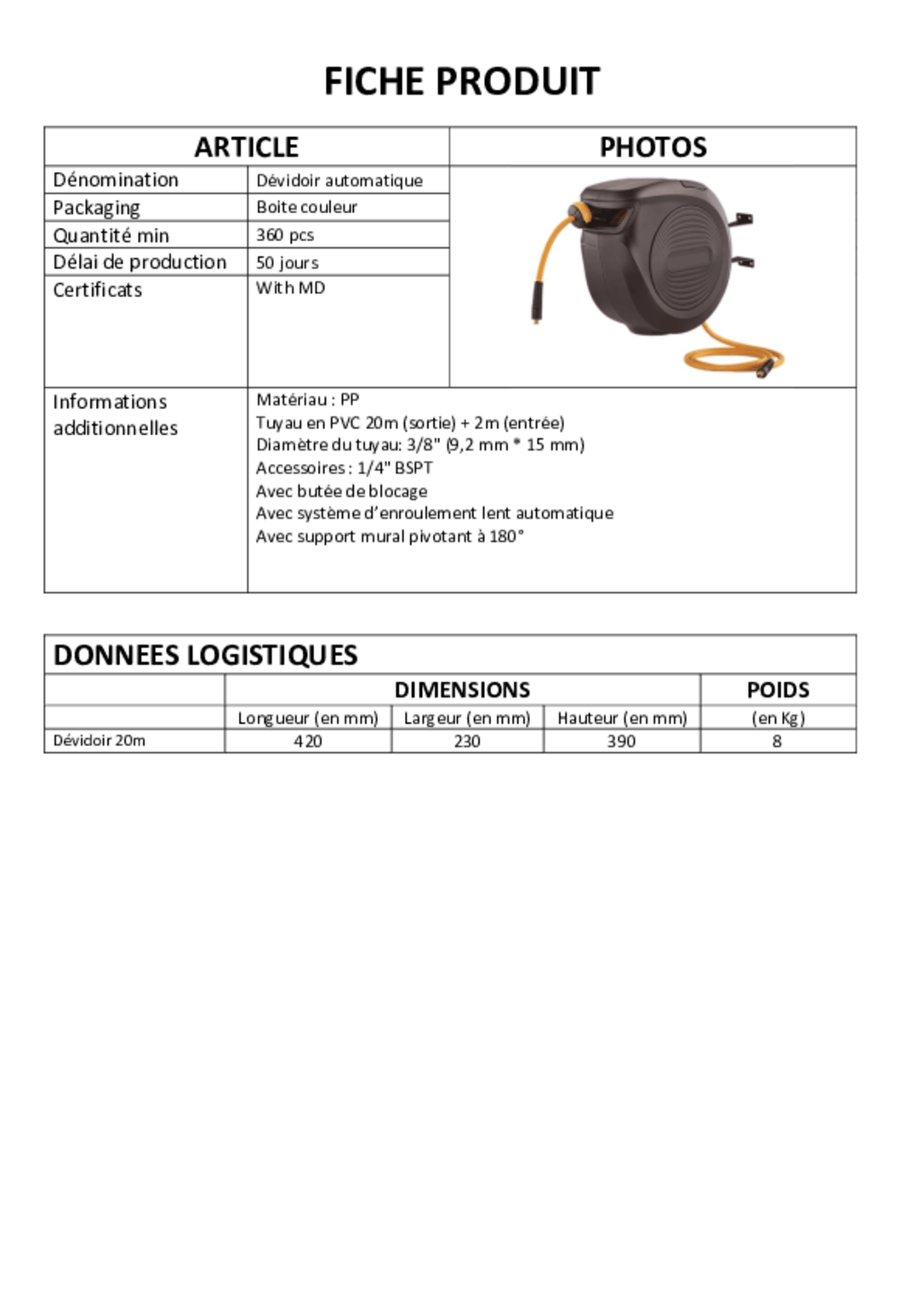 Guide-tuyau rétractable automatique.