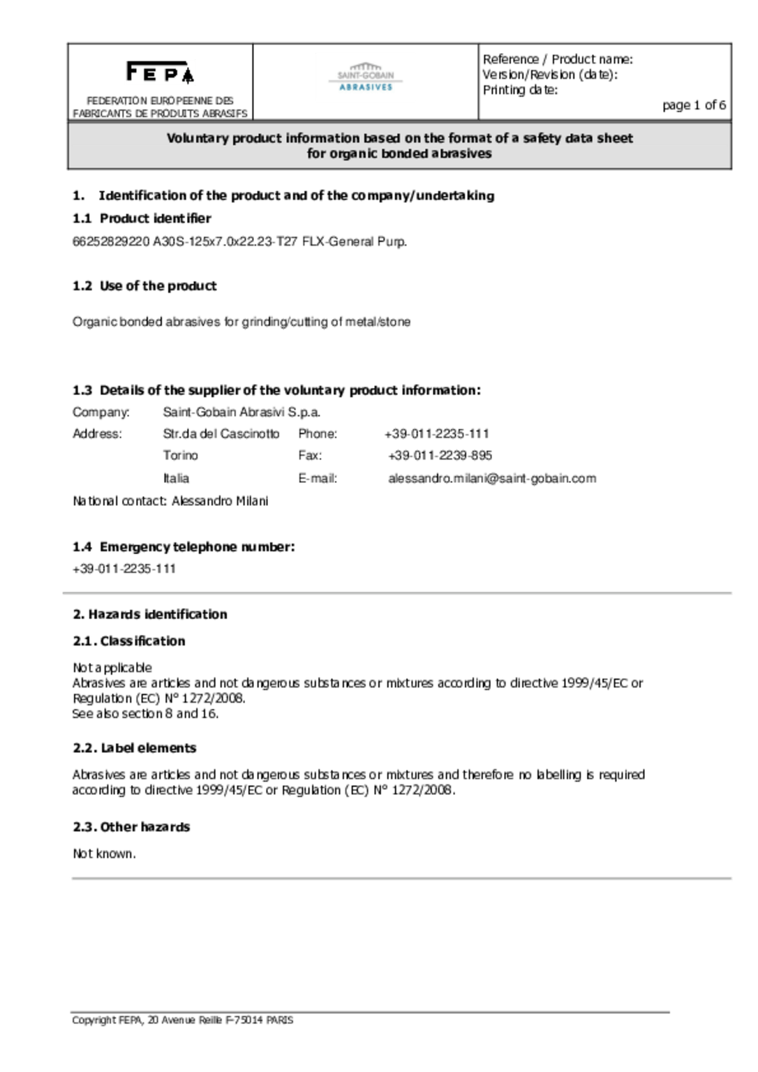 Disque à tronçonner. Moyeu plat. Acier/Inox. Formule sans soufre, ni fer, ni chlore. Applications universelles. Dimensions : 230x2x22,23 mm. Spécification : A 30 S-BF41.