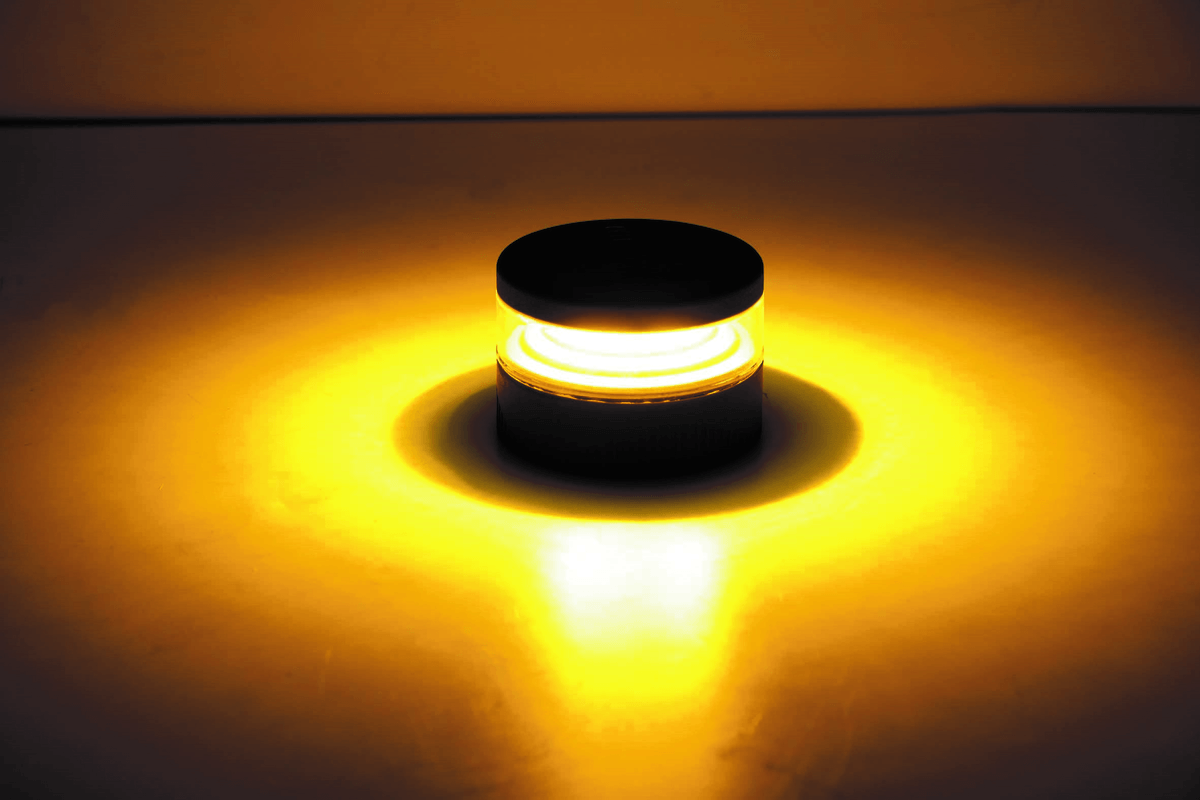 Balise de secours led 2 en 1. Tension : 5V, 1A. La base magnétique permet le positionnement sur toute surface métallique. 4 LED blanches / 28 LED oranges. 7 modes possibles : simple flash, double flash, triple simple, quintuple flash, double flash et quadruple flash alternés, SOS, lampe de secours (lumière blanche). Température d'utilisation : de -40° à +60°C. Batterie Li-ion : 2200mAh, 3,7V. IP 67. Diamètre : 80 mm, hauteur : 54,5 mm. Livré avec câble USB-C. Poids : 300 g.