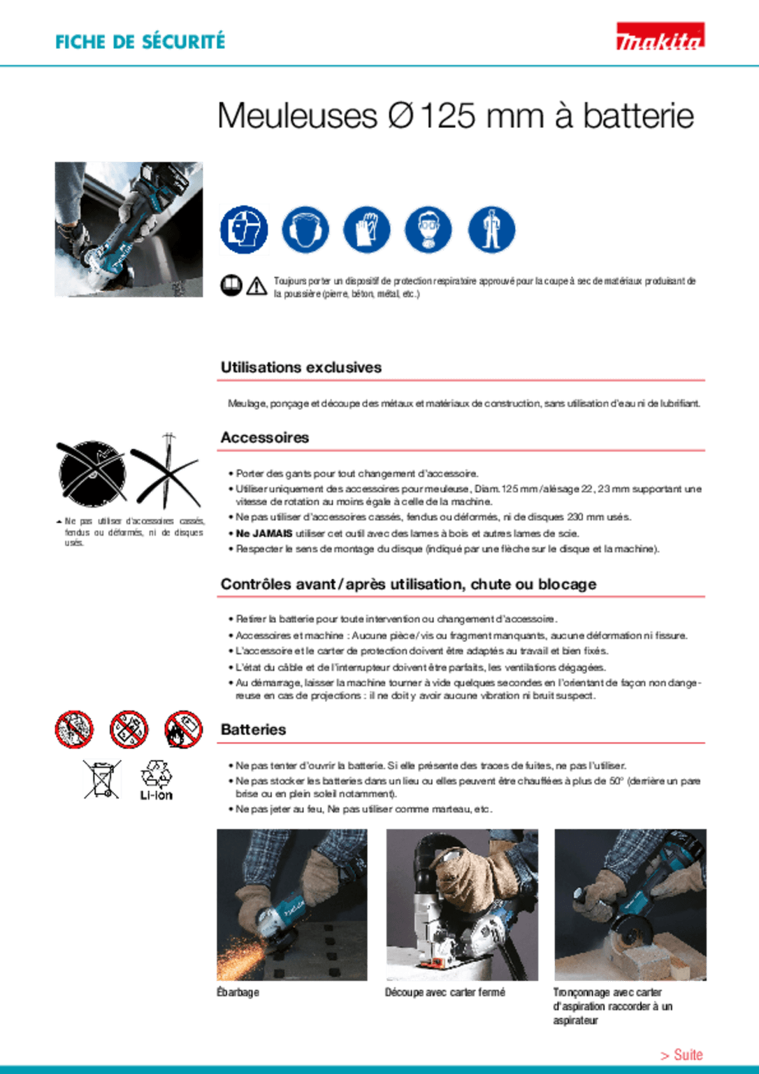- Meuleuses, tronçonneuses