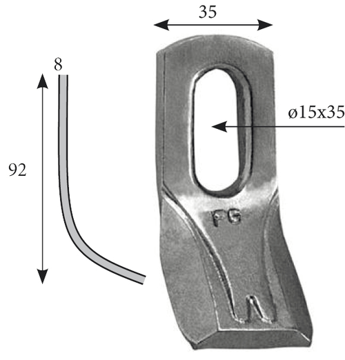 Longueur : 92 mm. Largeur : 35 mm. Epaisseur : 8 mm. Diamètre : 15x35 mm. Référence SMA : SM35-C. Référence Rousseau : 5.254.30. Référence Bomford/Mc Connel : 43092,01/7190177.