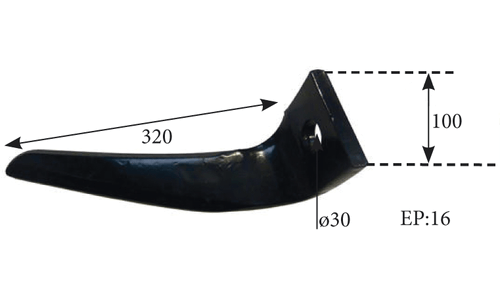 Longueur : 320 mm. Largeur : 100 mm. Epaisseur : 16 mm. Diamètre trou : 30 mm. Pour herse KG-34. Droite.